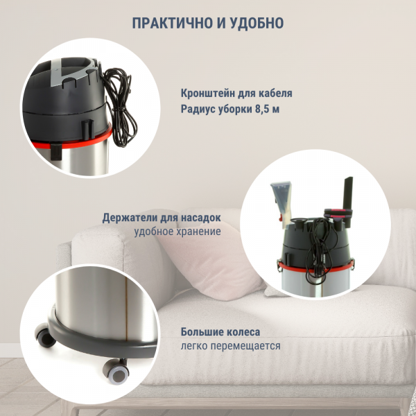 Моющий пылесос c аквафильтром в стальном корпусе для уборки больших площадей